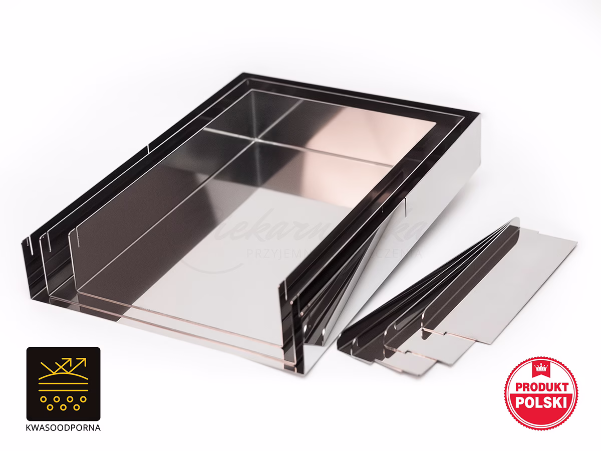 - Stal nierdzewna ma elegancki wygląd, co może być dodatkowym atutem w przypadku sprzętu kuchennego używanego w widocznych miejscach. Stosujemy blachę lustrzaną co dodaje jej dodatkowego niepowtarzalnego charakteru.